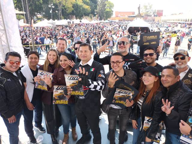 Con la Plaza de la Concordia como punto de encuentro, las autoridades arribaron acompañadas de más de 3 mil motocicletas, generando un ambiente biker y totalmente familiar en el corazón de San Pedro Cholula.