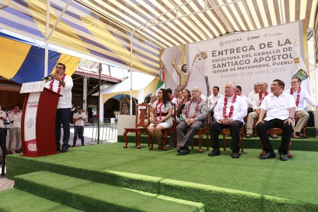 Posteriormente, el gobernador Sergio Salomón presidió la entrega de la escultura del Caballo de Santiago Apóstol, la cual fue reelaborada tras resultar dañada por los sismos de 2017.