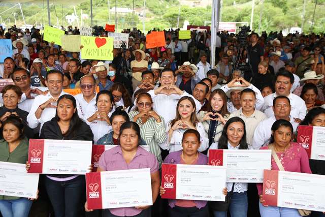HUEHUETLÁN EL GRANDE, Pue.— El gobernador Alejandro Armenta encabezó la entrega de insumos agrícolas y certificados del programa de obra comunitaria en este municipio de la mixteca poblana. En total, se destinaron más de 9.7 millones de pesos en apoyos para la siembra de sorgo, fertilizantes y abonos, y más de 6 millones para obras comunitarias en beneficio directo de las y los habitantes de 14 municipios.