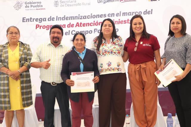 GENERAL FELIPE ÁNGELES, Pue. – Con la encomienda del gobernador Sergio Salomón de atender de manera inmediata a las y los productores afectados por la reciente granizada registrada en los municipios General Felipe Ángeles y Quecholac, la Secretaría de Desarrollo Rural (SDR) entregó cheques de indemnización, a 305 trabajadores del campo de esta región.