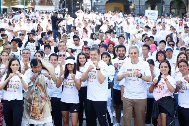 CIUDAD DE PUEBLA, Pue.- Con la participación de más de 3 mil poblanos y poblanas, y 150 municipios de la entidad, el gobierno de Alejandro Armenta, se sumó a la Clase Nacional de Boxeo que encabezó la presidenta de México, Claudia Sheinbaum, y que de manera simultánea se llevó a cabo en todas las plazas públicas del país, a fin de generar en la juventud mexicana opciones de actividades deportivas, alejarlos de los vicios y contribuir a la construcción de la paz.