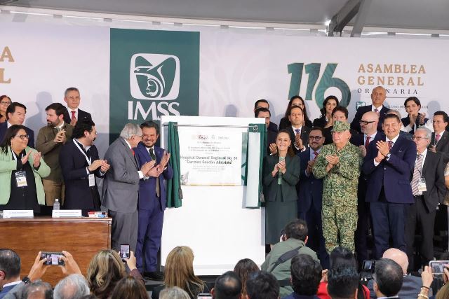 En el marco de la 116 Asamblea General del IMSS, la presidenta de México indicó que el instituto es motivo de orgullo nacional, al conformar la red de hospitales más grande de América Latina. Enfatizó que en 12 años el instituto aumentará a 11 mil camas, casi tres veces más de lo que creció en 36 años, durante el periodo neoliberal.