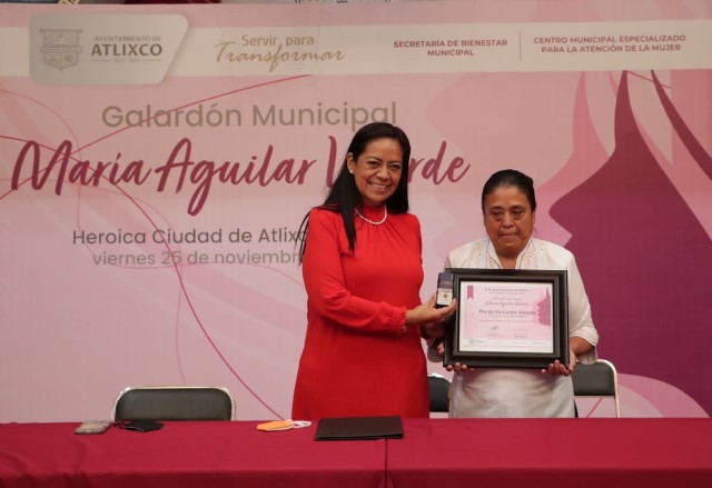 En el marco del Día Internacional de la Eliminación de la Violencia contra las Mujeres, la presidenta municipal de Atlixco, Ariadna Ayala, realizó reconocimiento póstumo con el galardón, “María Aguilar Velarde” a Margarita Cortés, fundadora de Enchiladas Maguito, quien en 1970 abrió la brecha que permitió a mas mujeres emprender en la actividad comercial representativa en gastronomía atlixquense, además de ser fuente de inspiración y trabajo para más mujeres de esa época.