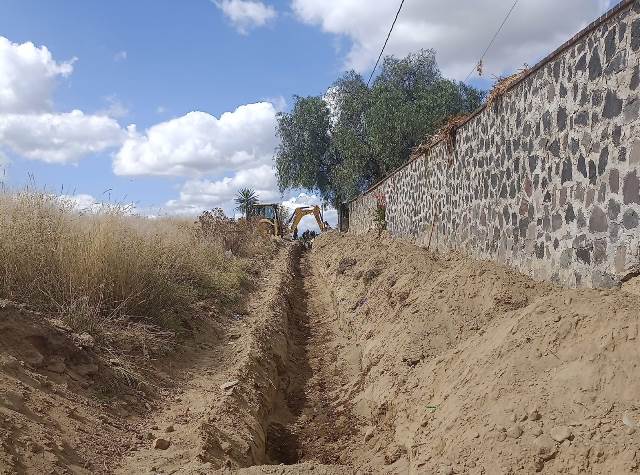 La instalación del drenaje sanitario contempló la construcción de 417.18 metros lineales, así como de siete pozos de visita, de 23 descargas domiciliarias e igual número de registros sanitarios.