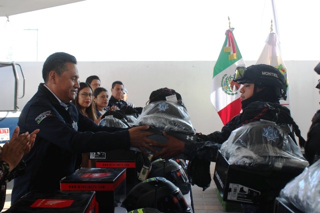 - El alcalde señaló que la entrega de estos equipos es una prioridad para dignificar la función de los policías de Coronango.