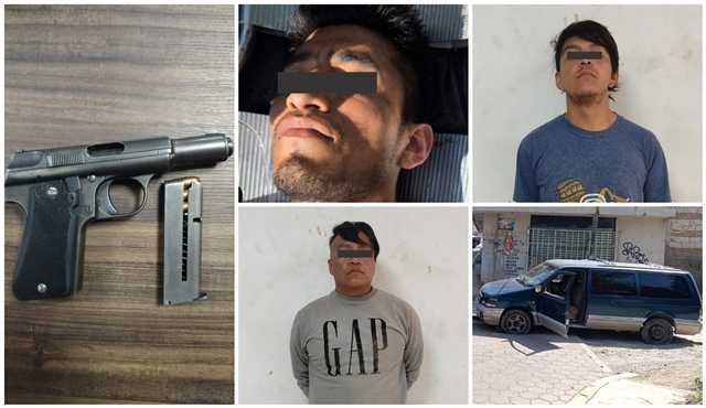 Cuautlancingo, Puebla.– Derivado de una oportuna intervención, elementos de la Secretaría de Seguridad Ciudadana y Protección Civil aseguraron a tres masculinos señalados por los delitos de detentación de vehículo con reporte de robo, portación de arma de fuego, delitos contra la salud y lo que resulte.
