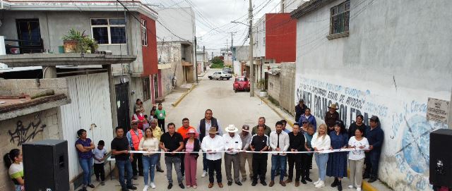 Amozoc de Mota, Puebla a 6 de septiembre de 2025.- El Presidente Municipal Severiano de la Rosa Romero inaugura pavimentación con concreto hidráulico en la calle 2 Poniente, beneficiando a familias y automovilistas.