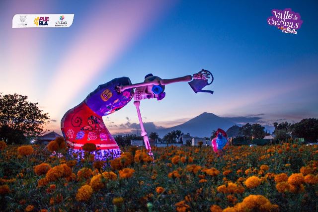 Valle de Catrinas, ofrece un recorrido por el Centro Histórico, puntos emblemáticos, así como campos de Cempasúchil, donde podrás tomarse fotos con los paisajes naturales que brindan el volcán Popocatépetl y el cerro de San Miguel.