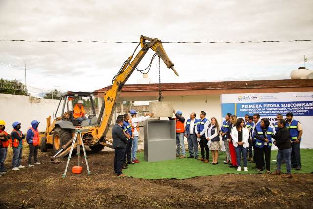 San Andrés Cholula, Puebla.- El presidente municipal, Mundo Tlatehui, en compañía de la síndico Felisa Jaramillo Romero, regidoras y regidores; llevaron a cabo la colocación de la primera piedra de la Subcomisaría en el “Corredor Turístico Actipan-Comac-Tonantzintla-Acatepec”, en beneficio de 16 mil habitantes de las juntas auxiliares antes mencionadas.