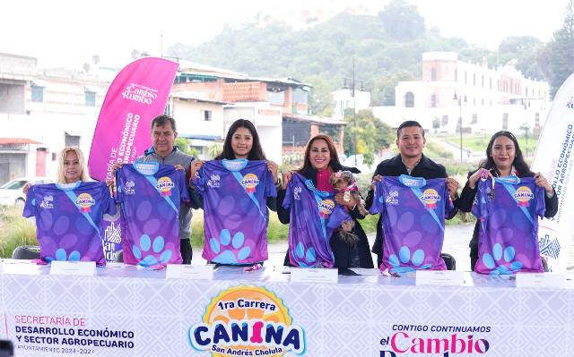 San Andrés Cholula, Puebla. – Con el objetivo de promover el bienestar físico y emocional de los caninos como miembros importantes de la familia, el gobierno municipal de San Andrés Cholula, a través de Secretaría de Desarrollo Económico y Sector Agropecuario presentó la medalla y la playera de la 1ª Carrera Canina a celebrarse el próximo domingo 20 de julio.