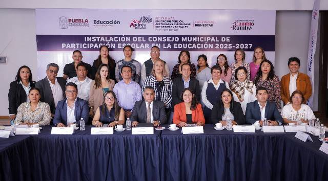 San Andrés Cholula, Puebla. – Con el propósito de mantener una vinculación activa y constante entre la escuela y las comunidades, la presidenta municipal, Lupita Cuautle Torres, presidió la sesión de instalación del Consejo Municipal de Participación Escolar en la Educación.