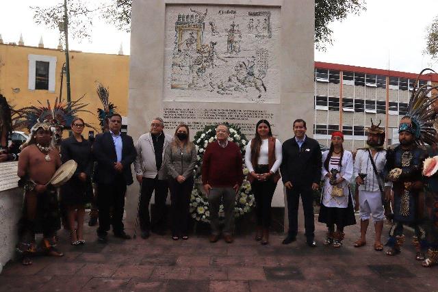 Posteriormente, se realizó una ceremonia tradicional a cargo de Huitzil Calpulli, así como la colocación de la ofrenda conmemorativa en el monumento a los caídos en dicho evento histórico.