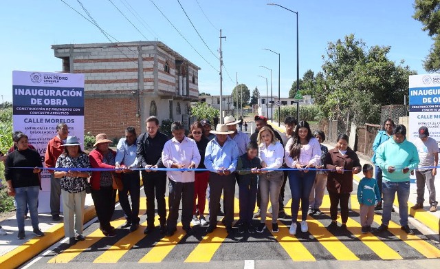 San Pedro Cholula, Puebla. -La Presidenta Municipal Paola Angon inauguró este viernes, junto a los vecinos de la junta auxiliar de San Agustín Calvario, la pavimentación de la calle Morelos en beneficio de las familias y pequeños de los hogares de esta zona, que podrán disfrutar de un mejor entorno, con la ejecución de esta obra.