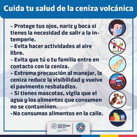 También se hace un recordatorio a las y los cholultecas de las medidas de prevención y recomendaciones, ante la actividad volcánica que ha generado caída de ceniza de leve a moderada, para privilegiar la salud y bienestar de todos los integrantes de la familia: