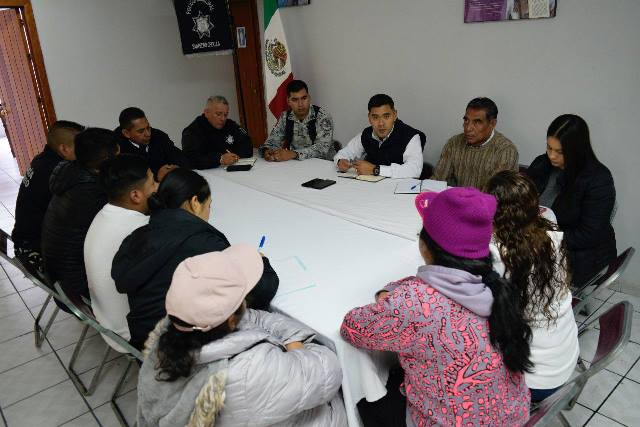 San Pedro Cholula, Pue.– Como parte del trabajo conjunto entre los tres niveles de gobierno, se llevó a cabo una mesa de seguridad en la Junta Auxiliar de Santa María Acuexcomac, encabezada por el Capitán Juan Villegas, secretario de Seguridad Ciudadana de San Pedro Cholula, en representación de la presidenta municipal, Tonantzin Fernández.