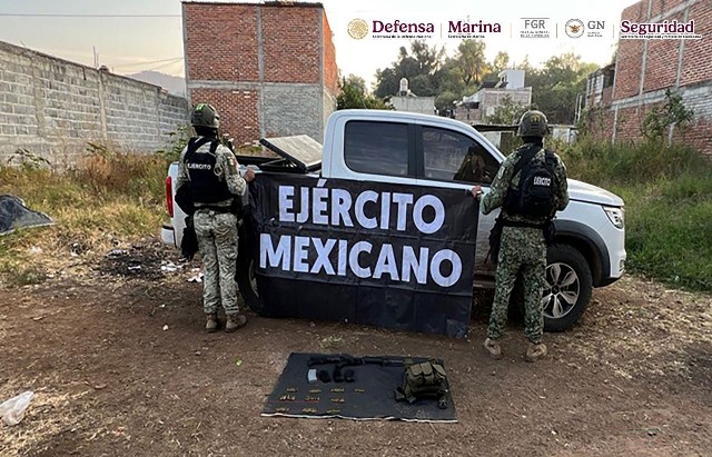 Resultado de las labores del Plan Michoacán por la Paz y la Justicia, elementos de la Secretaría de la Defensa Nacional (Defensa) y Guardia Nacional (GN), en coordinación con la Secretaría de Marina (Semar), Fiscalía General de la República (FGR) y Secretaría de Seguridad y Protección Ciudadana (SSPC), junto con autoridades locales, se detuvo a cinco personas, se aseguró un arma de fuego, 98 cartuchos, cuatro cargadores, dos artefactos explosivos improvisados y cuatro vehículos.