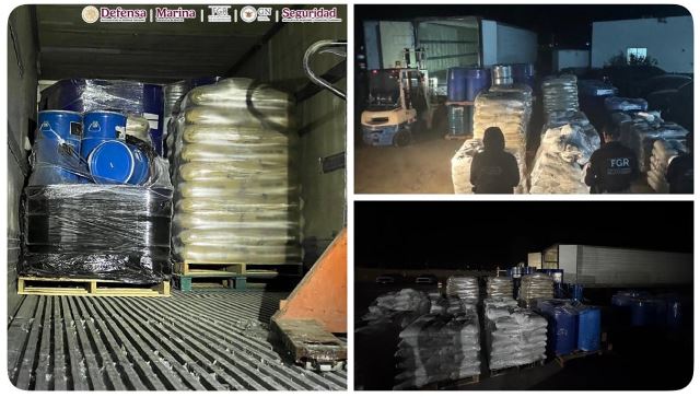 Durante la inspección, los agentes identificaron diversos materiales con características de precursores químicos, por lo que procedieron a su aseguramiento para evitar su uso en la fabricación de drogas sintéticas. Se aseguraron 300 costales con 7,500 kilos de acetona de plomo, 36 costales de 900 kilos de ácido tartárico, 20 tambos con 4,000 litros de etanol, 100 kilos de una sustancia sólida color blanco, 4,500 kilos de sosa y 3,000 litros de químicos, entre otras sustancias liquidas.