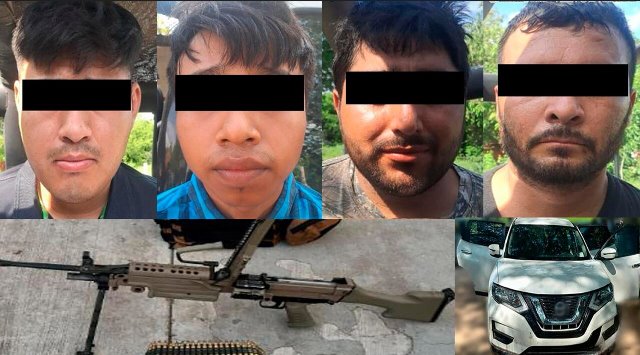 - Cinco personas fueron detenidas, entre ellas un menor de edad, se aseguró armamento, equipo táctico, vehículos y dosis de drogas.