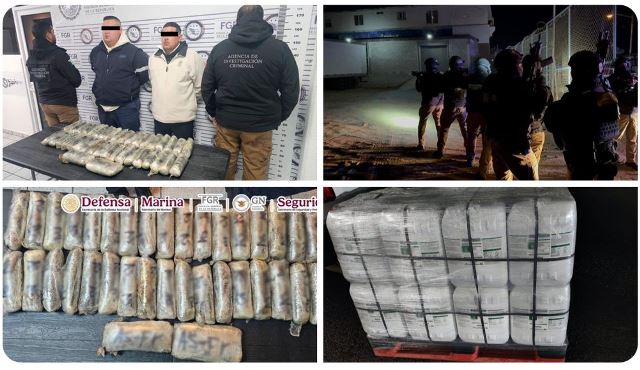 En acciones encabezadas por elementos de la Agencia de Investigación Criminal (AIC) de la Fiscalía General de la República (FGR), junto con la Secretaría de la Defensa Nacional (Defensa), Secretaría de Marina (Semar), Guardia Nacional (GN) y Secretaría de Seguridad y Protección Ciudadana (SSPC), en Sonora fueron detenidas dos personas que transportaban paquetes con pastillas de fentanilo y heroína; y en un cateo realizado en Baja California aseguraron cuatro toneladas de metanfetamina.