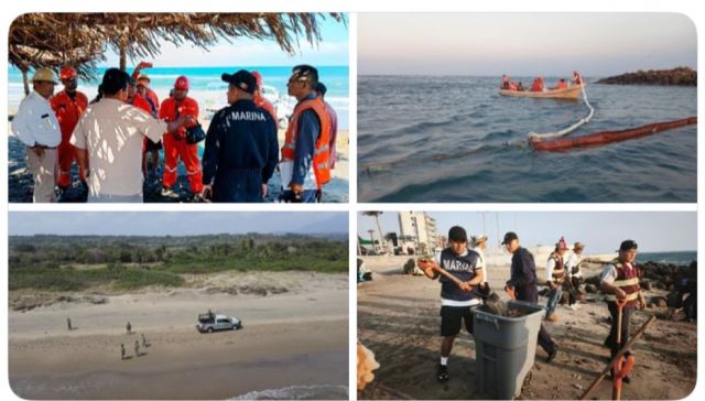 El Gobierno de México mantiene acciones de coordinación interinstitucional para atender la presencia de hidrocarburos detectada en playas de Veracruz y Tabasco. Estas acciones se realizan a través del Centro de Comando Unificado de Veracruz, en el que participan la Secretaría de Marina (Semar), Petróleos Mexicanos (Pemex), Protección Civil, la Agencia de Seguridad, Energía y Ambiente (ASEA) de la Secretaría de Medio Ambiente y Recursos Naturales (Semarnat), La Procuraduría del Medio Ambiente, Comunidad Portuaria y Pesquera, en coordinación con las autoridades de Tabasco y Veracruz.