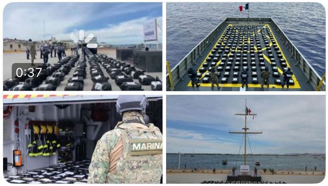 Ciudad de México.- En el marco de las acciones permanentes para mantener el Estado de derecho, la Secretaría de Marina a través de la Armada de México en funciones de Guardia Costera, informa que, durante operaciones de vigilancia y seguridad marítima, se logró el aseguramiento de aproximadamente 188 bultos que representan varias toneladas de presunta cocaína, en espera de que las autoridades competentes determinen el peso ministerial.
