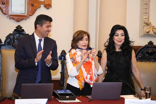 “Por enriquecer las letras con tus obras, por tus relatos amenos e interesantes, por traspasar fronteras y por poner en alto el nombre de Puebla, este Honorable Ayuntamiento ha tomado la decisión de otorgarle a María de los Ángeles Mastretta Guzmán la Presea Puebla de Zaragoza”, destacó en su mensaje el Alcalde.