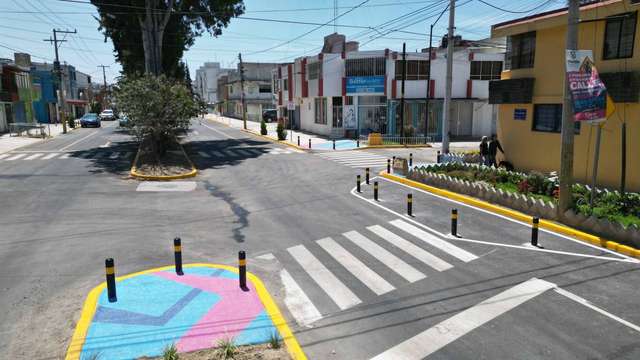 Fue así que el proyecto de intervención integral no sólo contempló la restitución de la carpeta asfáltica de ocho mil 656 metros cuadrados, también la construcción de banquetas, guarniciones con concreto hidráulico y rampas de acceso, la colocación de bolardos, arbolado, así como reductores de velocidad y más trabajos para mejorar la movilidad y seguridad vial de la zona.