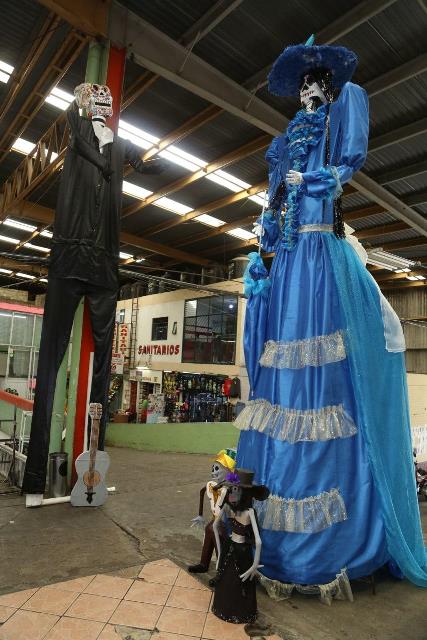 Se trata de dos figuras monumentales, un catrín y una catrina de nueve metros de altura, las cuales se encuentran ubicadas en el área de pescados y mariscos de dicho centro de abasto.