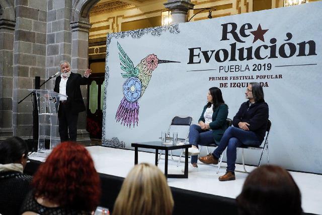 Alejandro Encinas Rodríguez, subsecretario de Derechos Humanos, Población y Marginación del Gobierno Federal participó, ante un auditorio lleno en el Palacio Municipal, en el Primer Festival Popular de Izquierda Re-Evolución Puebla 2019, con su conferencia “Proyecto de izquierda y Derechos Humanos”.