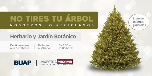- Hasta el 6 de febrero como fecha límite, el Jardín Botánico Universitario recibirá árboles de Navidad en horario de 8:00 a 16:00 horas, de lunes a sábado.