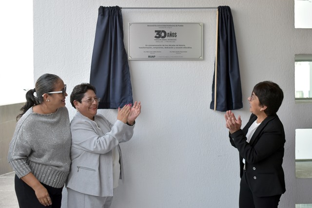 La Rectora María Lilia Cedillo Ramírez develó la placa conmemorativa por el 30 aniversario de la Formación General Universitaria Inglés-Francés, a cuya planta académica reconoció el esfuerzo y dedicación que brinda a sus estudiantes en la enseñanza de estas lenguas.