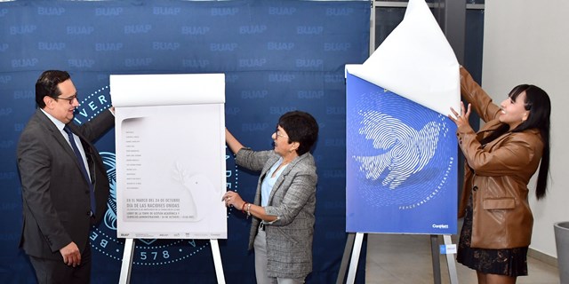 En el marco de la conmemoración del Día de las Naciones Unidas, la Rectora de la BUAP, Lilia Cedillo Ramírez, inauguró la exposición “Carteles unidos por la paz”. En su apertura expresó que la cultura de la paz va más allá de una frase: “Es la labor que hacemos cada uno de nosotros para fomentar espacios libres de violencia y está relacionada con valores, actitud y en cómo tratamos a nuestros semejantes, con respeto, inclusión, tolerancia, honestidad y rectitud”.